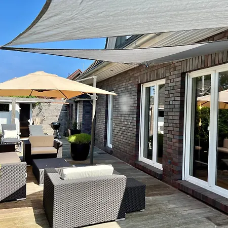Eine Küchenzeile verfügt über einen Herd und einen Geschirrspüler. Dieses Apartment ist in unmittelbarer Nähe zu der nächstgelegenen Bushaltestelle S Warnemuende Werft. Die Gäste sind eingeladen, auf einer Terrasse zu entspannen.